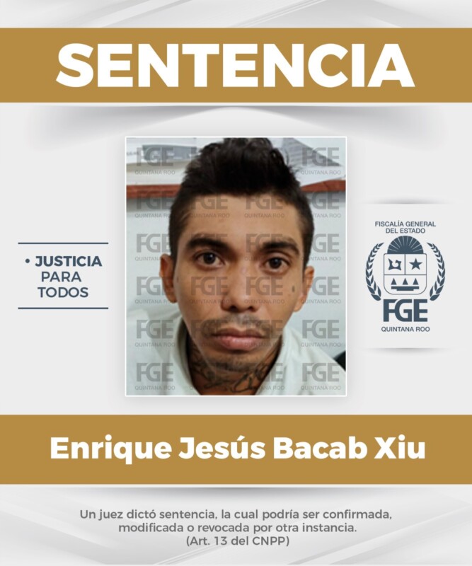 La sentencia fue obtenida por la Fiscalía General del Estado en contra de los hermanos Enrique Jesús Bacab Xiu y Germán Alberto Bacab Xiu, por hechos ocurridos el 23 de febrero de 2022 en la Supermanzana 227.