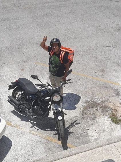 Ciudadanos que vieron afectados sus ingresos por la contingencia sanitaria por el Covid-19 buscan alternativas para emplearse y llevar el sustento diario a sus hogares, tal es el caso de Ulises Galván Bernal, prestador de servicios en el Aeropuerto Internacional de Cancún, quien con actitud positiva realiza por ahora entregas a domicilio.