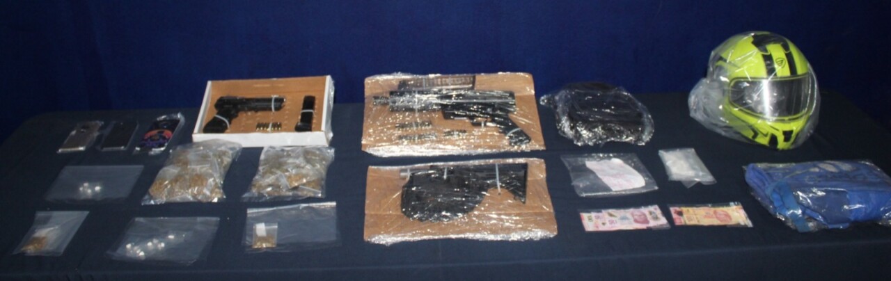 En ese momento les fueron halladas un arma de fuego corta y un arma de fuego larga, así como diversas dosis de presuntos enervantes, por lo que fueron detenidos.