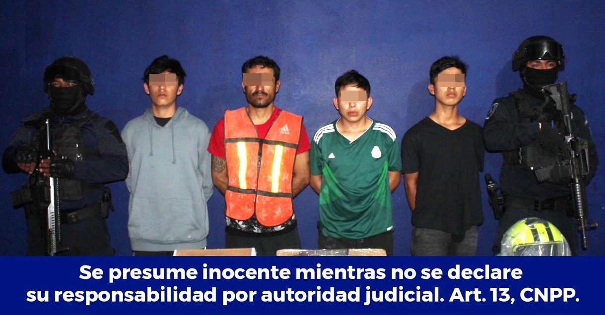 Por su probable participación en delitos contra la salud y portación de arma de fuego, fueron detenidos Juan Manuel «N», Bryan Anthoni «N», Carlos Alberto «N» y Pedro Antonio «N», en las inmediaciones de la Supermanzana 250 de Cancún.