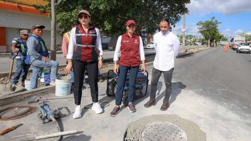 Acompañada por el secretario general del Ayuntamiento, Pablo Gutiérrez Fernández y la secretaria municipal de Obras Públicas y Servicios, Samantha Hernández Cardeña, la Alcaldesa aseguró que están en constante supervisión para que las obras se realicen con calidad en Cancún, comprobando que se concluyan de manera correcta y permitan a los cancunenses disfrutar de una ciudad moderna.