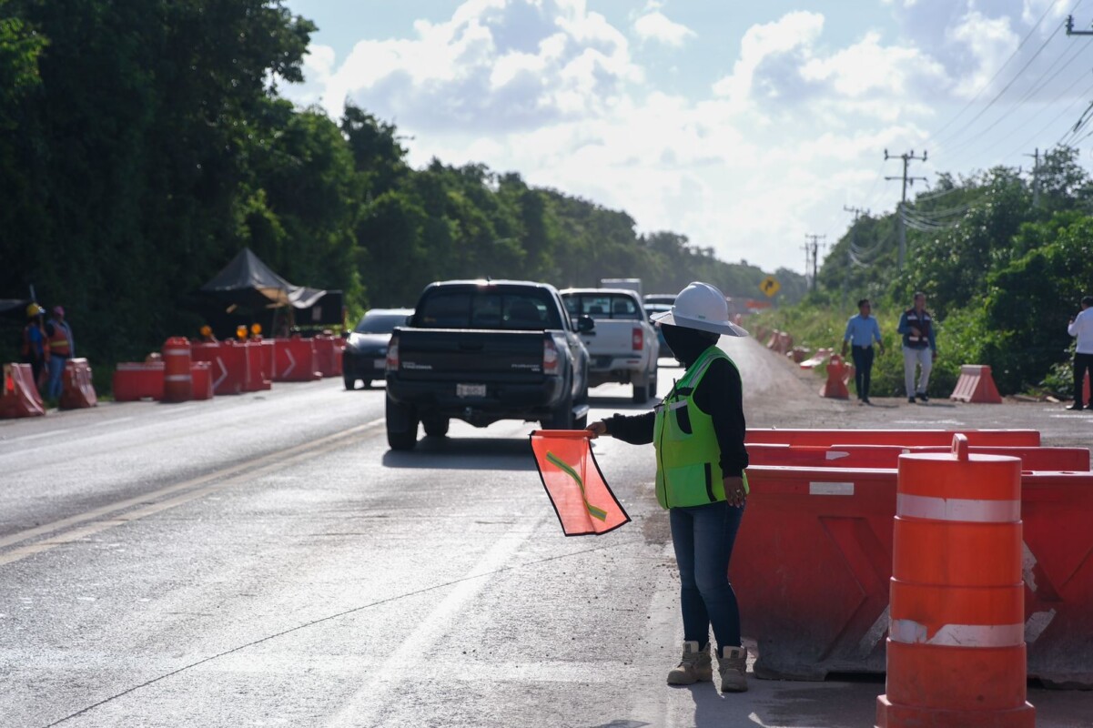 Al supervisar el lugar acompañada del secretario de Sedetus Armando Lara De Nigris, de representantes de Fonatur y de ICA, explicó que ante la cercanía de la inauguración del Tren Maya, se construye este entronque para mejorar la vialidad y responder con obras al aumento de carga vehicular.