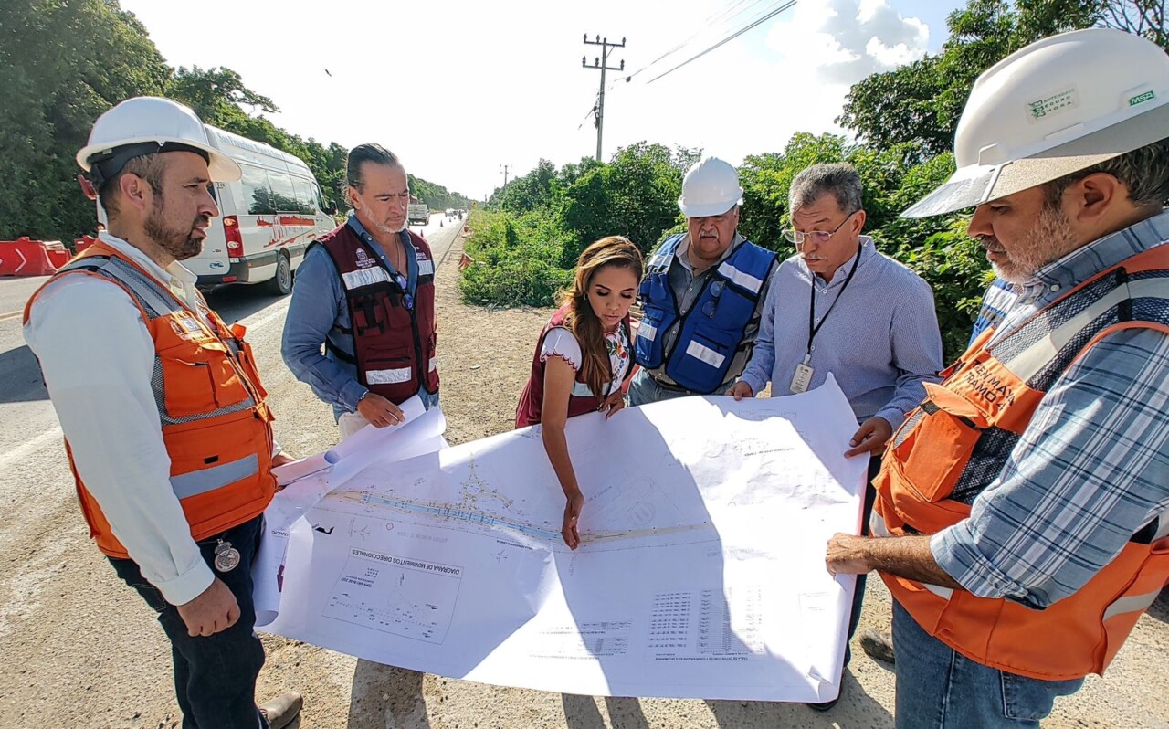 Al supervisar el lugar acompañada del secretario de Sedetus Armando Lara De Nigris, de representantes de Fonatur y de ICA, explicó que ante la cercanía de la inauguración del Tren Maya, se construye este entronque para mejorar la vialidad y responder con obras al aumento de carga vehicular.