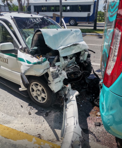 Taxista choca contra autobús en la zona hotelera de Cancún