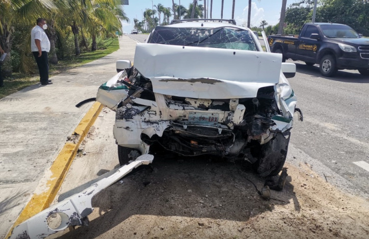El percance tuvo lugar en el bulevar Kukulkán, a la altura del kilómetro 18, donde se ubica el hotel Iberostar, cuando el trabajador del volante perdió el control de su unidad con numero económico 0401, y terminó estrellándola contra una unidad de transporte de personal.