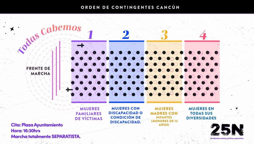 El recorrido que hará el contingente en Cancún, en el marco del 25N.