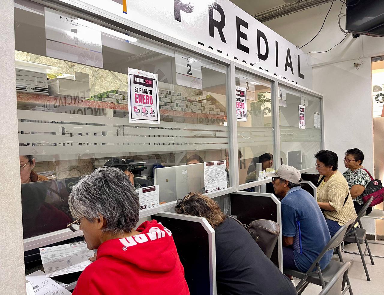 El Ayuntamiento de Benito Juárez, a través de la dirección de Ingresos, inició el cobro del impuesto predial 2026 ofreciendo diferentes descuentos que van en diferentes fechas desde el 15 hasta el cinco por ciento menos en dicho concepto, a partir del 07 de enero; además de continuar recibiendo este viernes a decenas de contribuyentes con pagos rezagados de otros años.