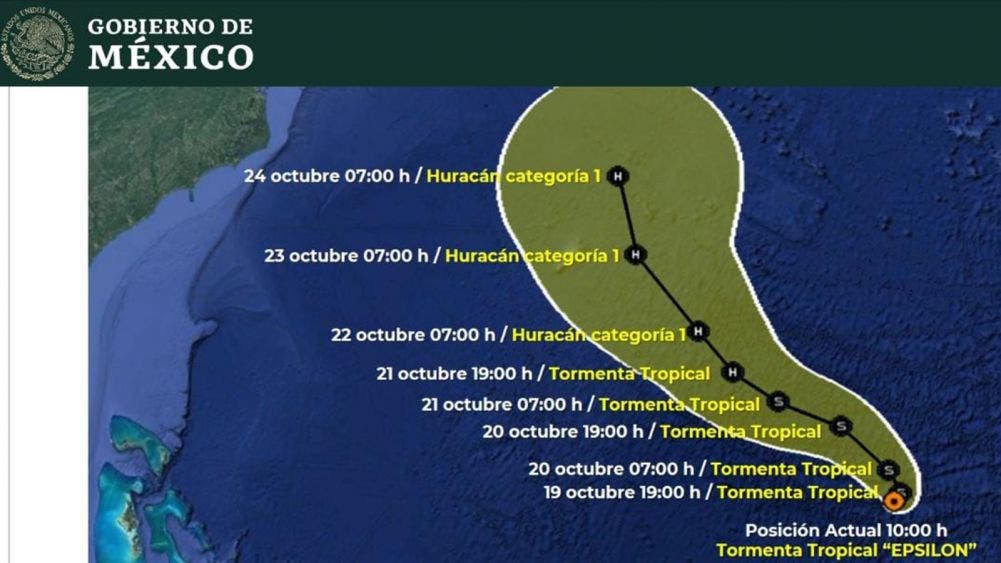 Además, se prevé que, en unos días, (el jueves 22 de octubre) alcance fuerza de huracán categoría 1, cuando se prevé que esté a 2 mil 785 km al este-noreste de Cancún, Q. Roo, por lo que se mantiene vigilancia, aunque de momento no representa riesgo.