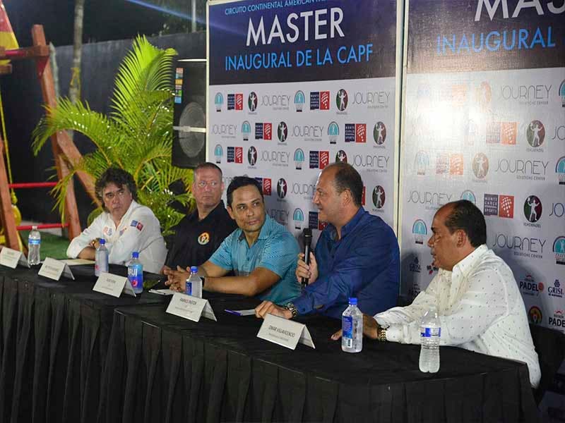 Acompañado de, Aldo Vidal CEO de Journey Padel Arena Cancún, Omar Villavicencio Presidente de la FEMEX PADEL, Peter Schwartz, Presidente de la Federación Canadiense de Pádel y Oscar Solé Responsable de Comunicacion y Marketing de Montecarlo Internacional Sport, dio a conocer los objetivos de este torneo.