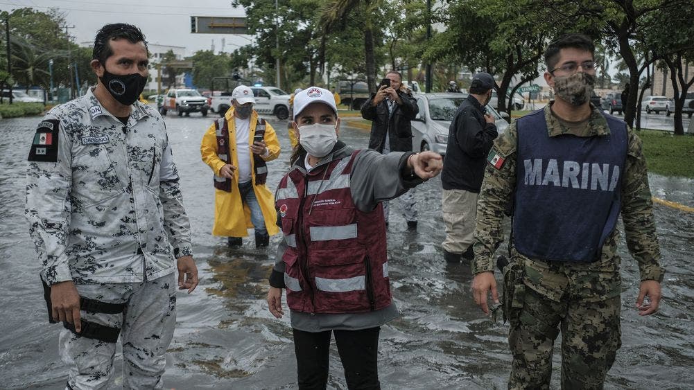Trabajo coordinado en Cancún para atender afectaciones por paso de tormenta tropical Gamma.- Acompañada de la Sedena, MARINA, Guardia Nacional y personal de las diversas direcciones municipales, la Presidente Municipal de Benito Juárez, Mara Lezama, supervisó los trabajos del Operativo Tormenta activado para atender las afectaciones ocasionados por el paso de la tormenta tropical Gamma.