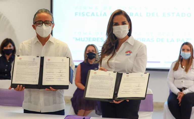 Signaron el convenio de colaboración la Primera Edil, Mara Lezama y el fiscal general del Estado, Oscar Montes de Oca Rosales, quien manifestó que la dependencia, como órgano encargado de la resolución de delitos y procuración de justicia, debe incorporar la perspectiva de género de manera transversal para visibilizar las conductas omisas que agravian a las mujeres.