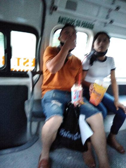 Abordo de la combi ruta 17 al rededor de las 6 de la tarde, estas dos personas se encontraban ingiriendo alimentos y por obvias razones, sin cubrebocas.