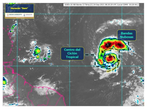 En tanto que el Huracán Sam, ya como categoría uno, se desplaza conforme a las previsiones, y se estima que incremente su poder hasta convertirse en un poderoso huracán categoría cuatro.