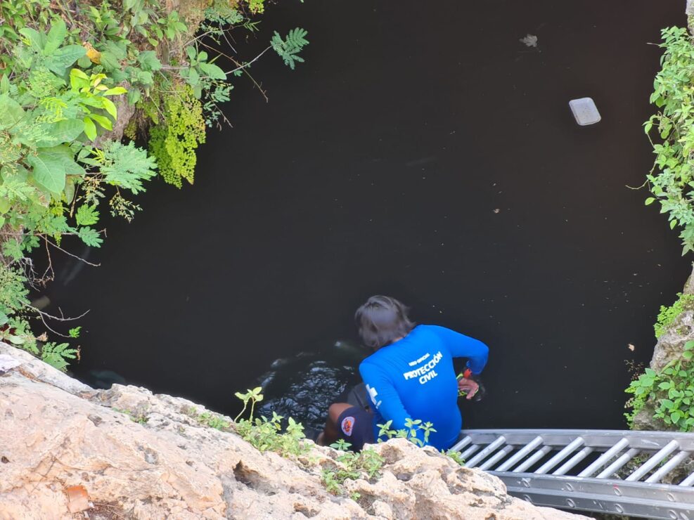 De acuerdo con los expertos en la búsqueda, el cenote tiene aproximadamente una profundidad de 12 metros, con agua turbia y lodosa, lo que podría dificultar la ubicación de la víctima.