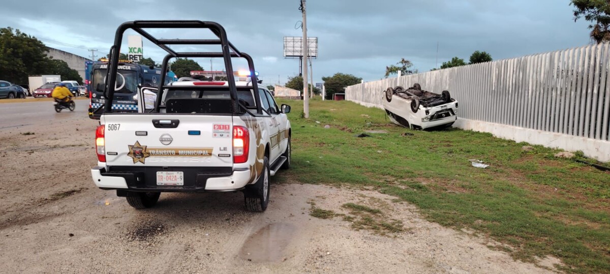 Se registró un aparatoso accidente vehicular la mañana de este martes en el bulevar Luis Donaldo Colosio de Cancún, donde una unidad tipo van terminó volcada sobre su techo.