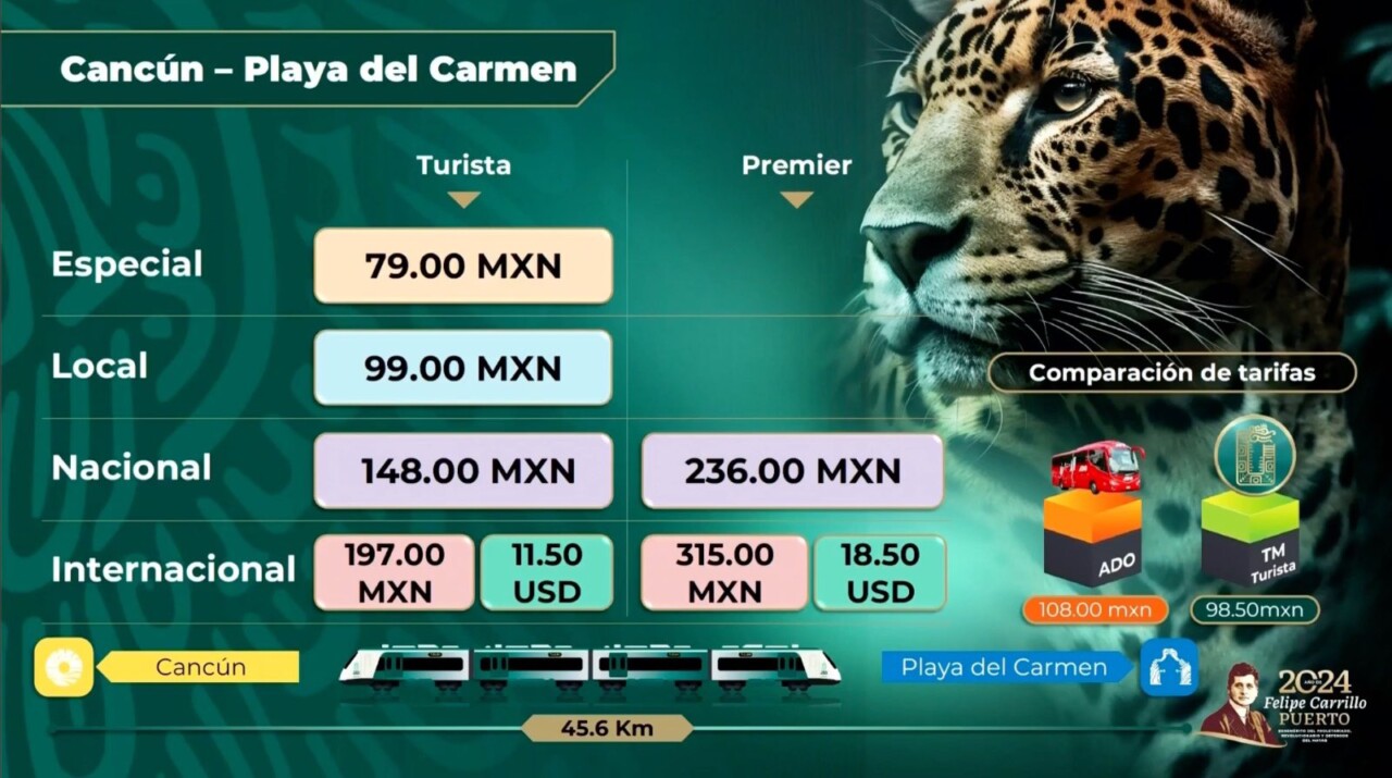 Cabe señalar que la ruta Cancún-Playa del Carmen tendrá 10 servicios, seis comerciales y cuatro especiales para atender a los trabajadores en dos horarios, 6 de la mañana y 17:30 horas de regreso. Se tiene capacidad para mover a 2 mil 210 pasajeros de ida y de regreso.