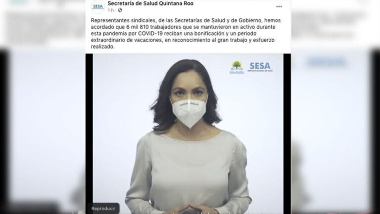 En el mensaje en video, posteado en la página oficial de facebook de la Secretaría de Salud de Quintana Roo, la funcionaria dijo que ya negociaron en una mesa de trabajo con el sindicato y dirigencias de los trabajadores, responder a los reclamos por el cumplimiento del bono covid, origen de la inconformidad de la base trabajadora hospitalaria.