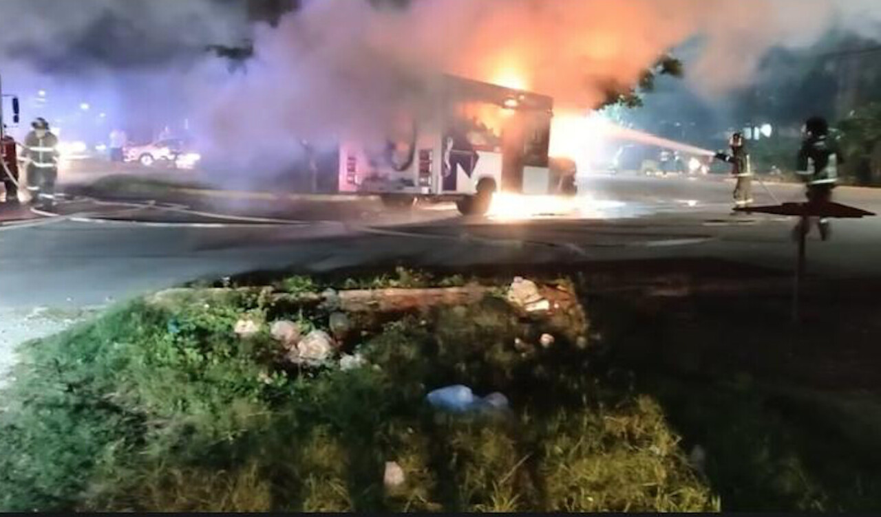Una ambulancia de una empresa privada fue consumida por las llamas en una céntrica avenida de Cancún. Hasta el momento se desconocen las causas que originaron el incendio que acabó con la unidad de rescate médico.