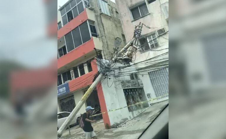 Camión de Autocar derriba par de postes en la avenida Palenque de Cancún
