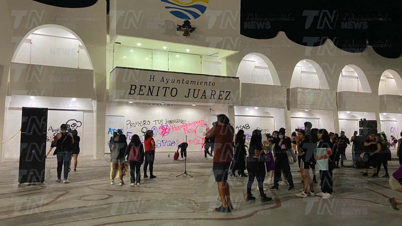 Mujeres en Cancún que marcharon en conmemoración del 8M, realizaron pintas en el Palacio Municipal pic.twitter.com/wrKhtdUmqZ