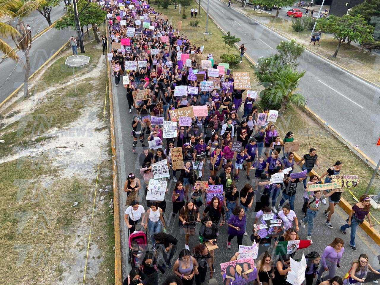 Aproximadamente unas mil 500 mujeres de diversos colectivos feministas, participaron la tarde de este miércoles en una multitudinaria marcha por céntricas avenidas de la Ciudad de Cancún para conmemorar el Día Internacional de la Mujer, denominado 8M.