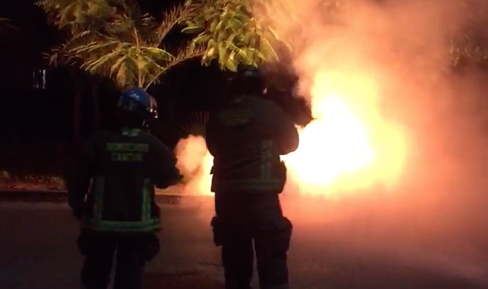 El percance tuvo lugar a la altura del paradero de la avenida Kabah entre las avenidas Lopez Portillo y Francisco I. Madero, las unidades de emergencia no pudieron sofocar las llamas del corto circuito al estar energizadas.