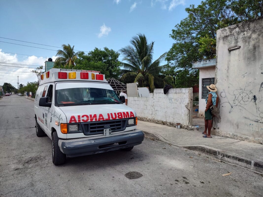 Allí varios de sus compañeros «catarrines», le prestaron auxilio y consiguieron llamar al numero de emergencias 911, por lo cual una patrulla de la Policía Quintana Roo llegó hasta este sitio a verificar el reporte.