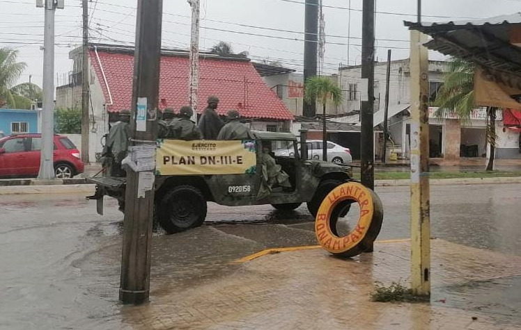 Durante el transcurso del día, un grupo de militares destacamentados en la ciudad de Cancún, a bordo de unidades tipo Humvee, recorrieron las calles de la ciudad para verificar el estado de afectación de las zonas susceptibles de riesgo.