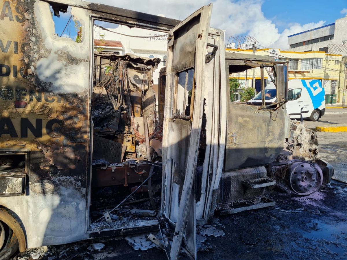Video: Incendian ambulancias de Playamed en Cancún; en el lugar fue hallada una narcomanta y pudiera estar relacionado con el cobro de piso.