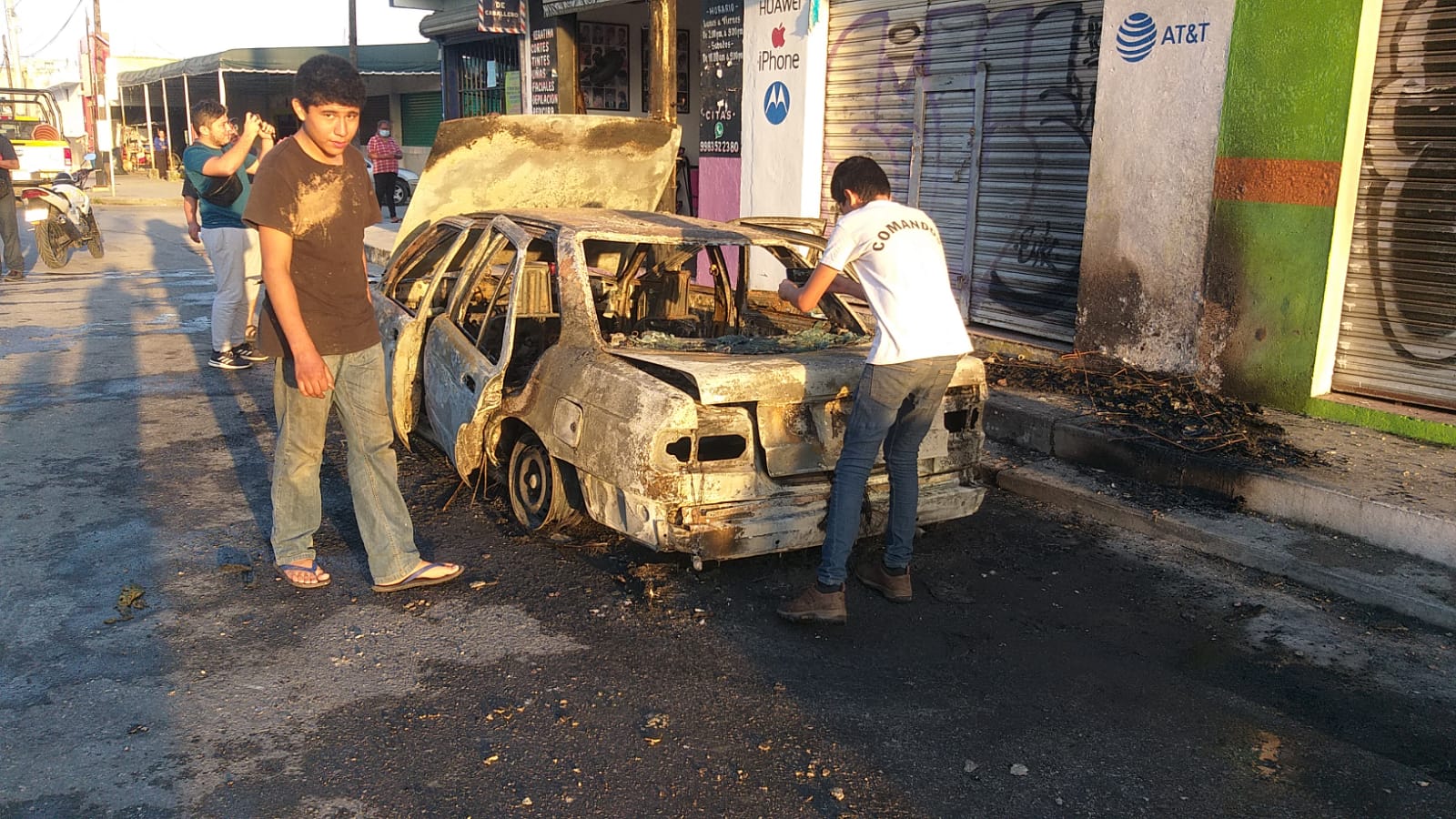 Poco después, tras el reporte al numero de emergencias 911, llegaron al lugar elementos del Heroico Cuerpo de Bomberos de Cancún, quienes de se encargaron de sofocar las llamas, aunque el auto ya estaba reducido a un cascaron humeante.