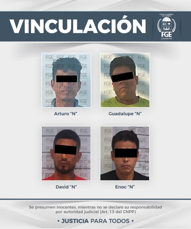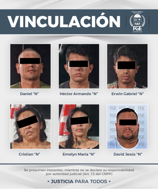 De acuerdo con un comunicado compartido por la dependencia en las Redes Sociales, durante una primera audiencia realizada en el municipio de Benito Juárez, las autoridades judiciales resolvieron vincular a proceso a Héctor Armando “N”, Daniel “N”, Erwin Gabriel “N”, Cristian “N” y Emelyn María “N”.