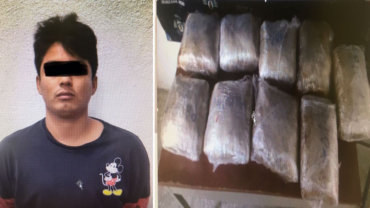 El hoy imputado fue detenido en el andén número ocho de la terminal de autobuses ADO en Cancún, en posesión de una maleta en la que se encontraban nueve paquetes con marihuana, con un peso aproximado de ocho kilos 912 gramos.