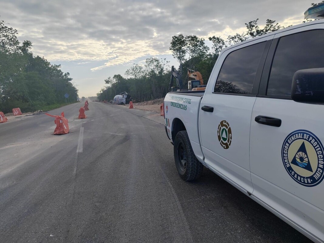 Asimismo, el Ayuntamiento de Benito Juárez dio a conocer que la volcadura no provocó fuga en la pipa de Gas LP.