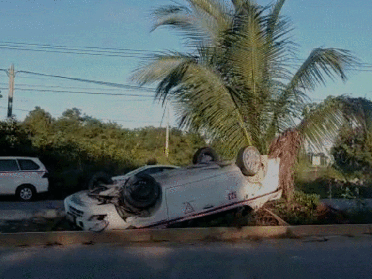 El reporte se dio alrededor de las 7:45 de la mañana de hoy, cuando el conductor de la unidad de alquiler circulaba hacia Cancún, pero perdió el control de la unidad, para después volcar y terminar sobre el camellón central.