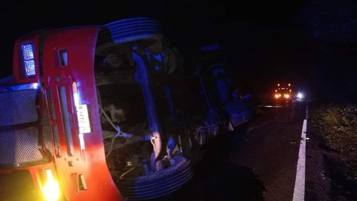 Al llegar al tramo de El Tintal se confirmó que se trataba de un tráiler tipo International, que estaba volcado sobre su lado derecho a un costado de la carretera, mientras que el chofer afortunadamente no sufrió lesiones de gravedad.