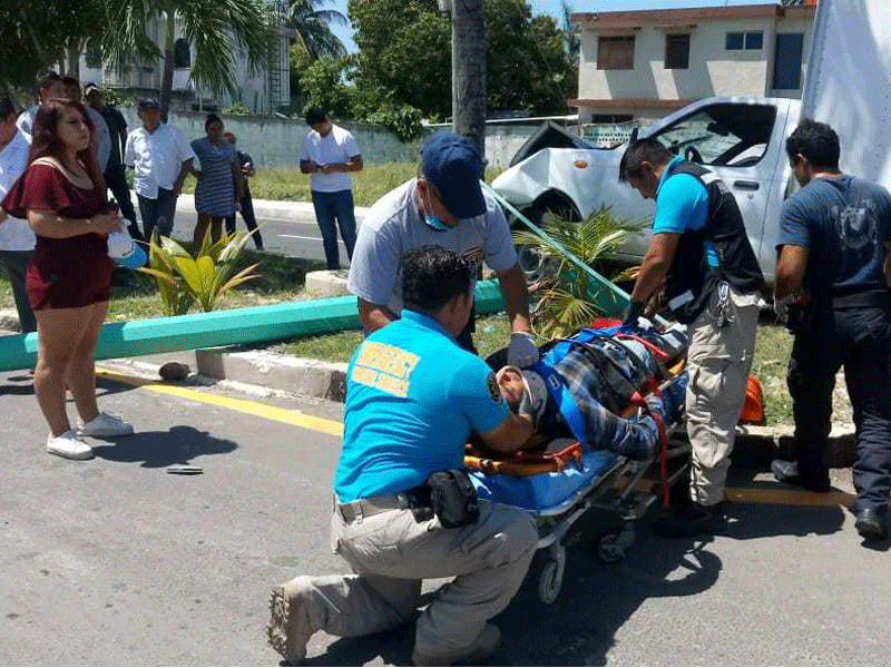 Chetumal, Q. Roo.- Un tremendo accidente automovilístico entre una camioneta de carga y un auto particular, dejó como saldo tres lesionados y cuantiosos daños materiales, en céntricas avenida de Chetumal.