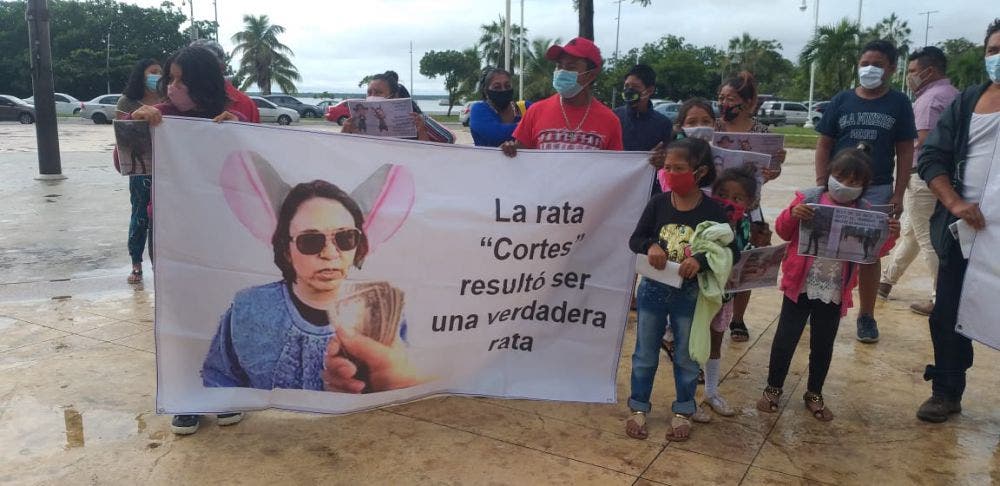 Habitantes de Mahahual se manifestaron este día para acusar a Fabiola Cortés, presidenta de la agrupación Somos Tus Ojos. Transparencia por Quintana Roo, y su hermano Gustavo Javier Rodríguez González, por el despojo e invasión de terrenos.