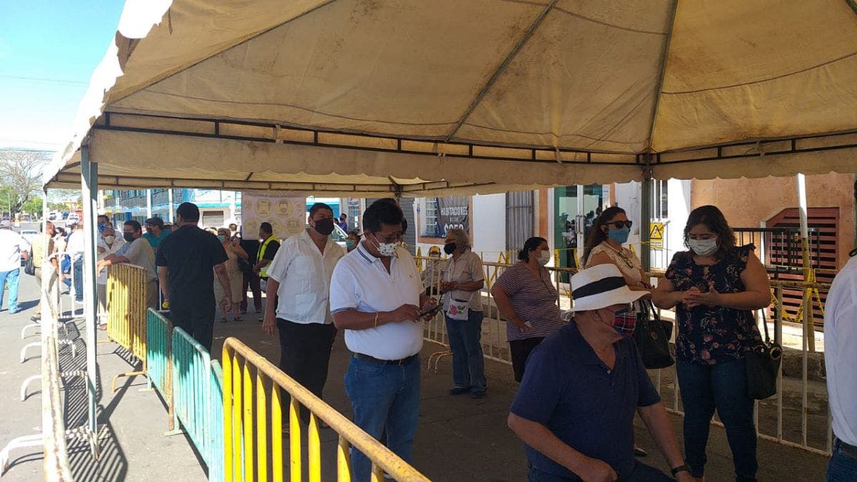 Las personas de la tercera edad, discapacitados y los considerados en los grupos vulnerables al Covid-19, ingresaban sin hacer fila. La vigilancia policiaca fue discreta, pues solamente había una patrulla con dos agentes.