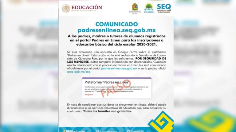 Sin embargo, la dependencia estatal, confirmó que esta encuesta esa falsa, incluso, a través de sus cuentas oficiales en las redes sociales, la SEQ pidió a los padres de familia, no proporcionar datos personales de sus hijos, por seguridad de los menores.