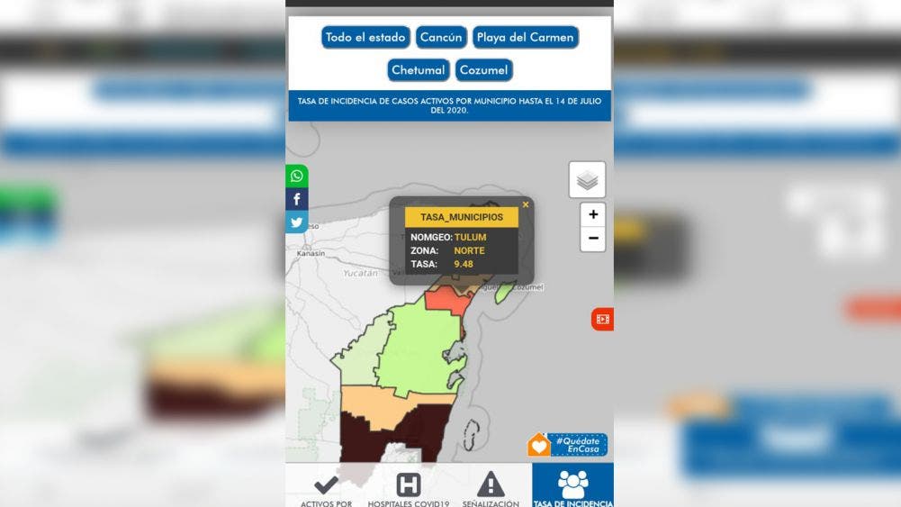 En donde se está registrando una incidencia de las más altas es en el municipio de Tulum con 9.48 por ciento incluso ya está circulando en redes sociales un video con un mensaje urgente, de la Secretaria de Salud, Alejandra Aguirre Crespo con una alerta por Covid 18 para los municipios de Tulum Felipe Carrillo Puerto bacalar y Chetumal todos en la Zona Sur de la entidad.