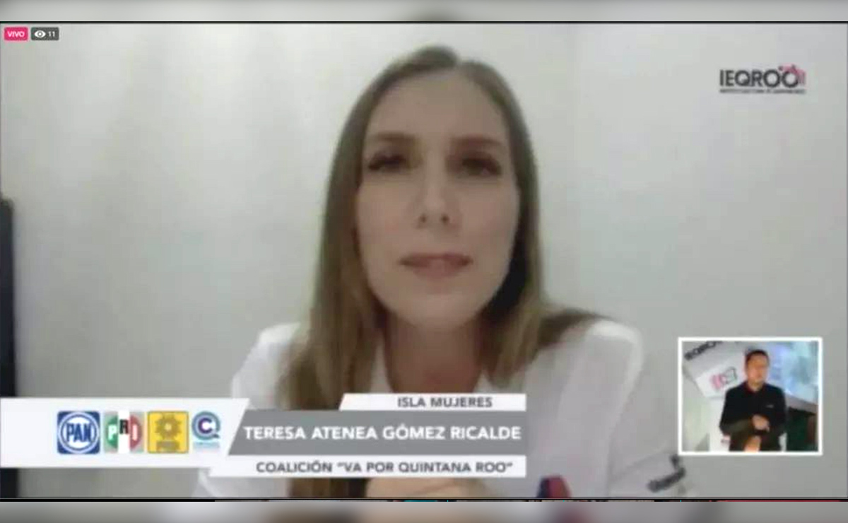 Cancelan debate de candidatos de Isla Mujeres, no hubo debate de candidatos a presidentes municipales de Isla Mujeres, solo se presentó, de manera virtual Atenea Gómez Ricalde de la coalición Va por Quintana Roo.