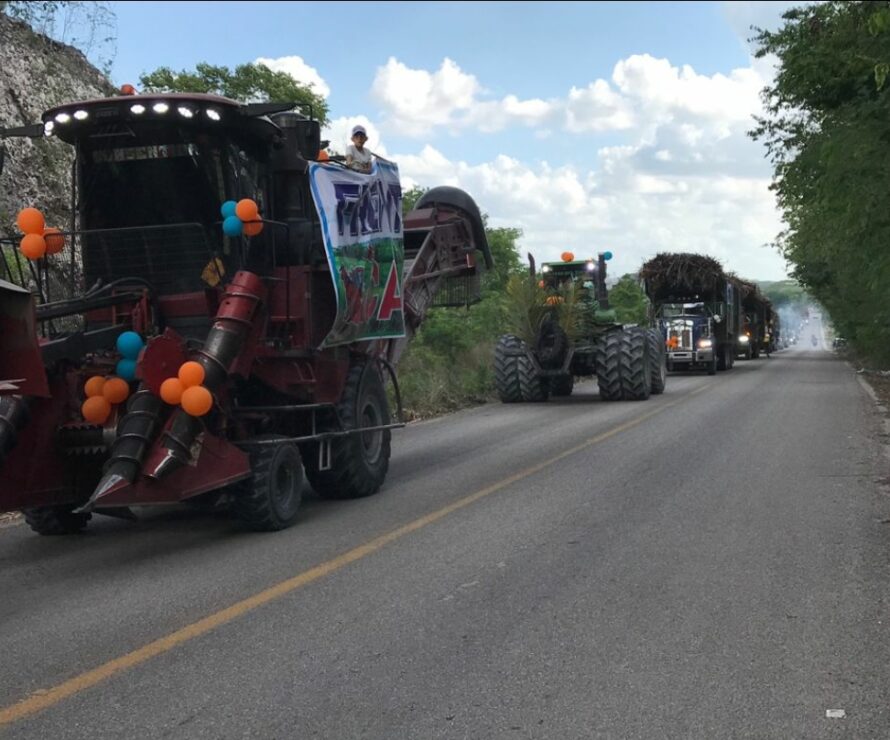 Como ya es toda una tradición, el frente de cosecha numero 19 realizó su desfile por las calles del poblado de Sac-xan, con 12 camiones, dos alzadoras y un Cameco, equipo con el que levantaron en campo 42 mil toneladas, cuatro mil más del estimado al inicio de la molienda que era de 38 mil toneladas.
