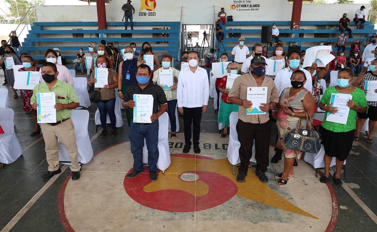 No hay mayor satisfacción para un servidor que entregarle a las familias quintanarroenses la certeza jurídica de su patrimonio. Hoy en #Chetumal tuve el gusto de entregar 120 títulos de propiedad, de los casi mil que hemos entregado en #OthónPBlanco. #JuntosSaldremosAdelante pic.twitter.com/Q6bQh6XjGs