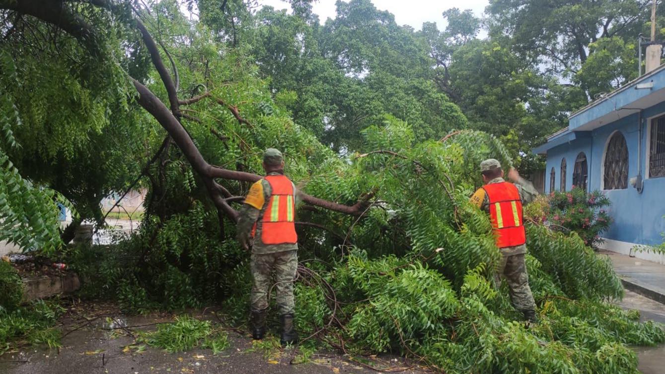 Se informó que a través de la Comandancia de la Trigésimo Cuarta Zona Militar y el Séptimo Regimiento de Caballería Motorizado, y con motivo de las lluvias prolongadas esta mañana, personal del Ejército Mexicano desde las primeras horas del día realizan el retiro de vehículos varados y árboles caídos, en la calle Flor de Mayo esquina con Jazmines, colonia Miraflores y avenida Enrique Barocio esquina con calle 12, colonia Guadalupe Victoria.
