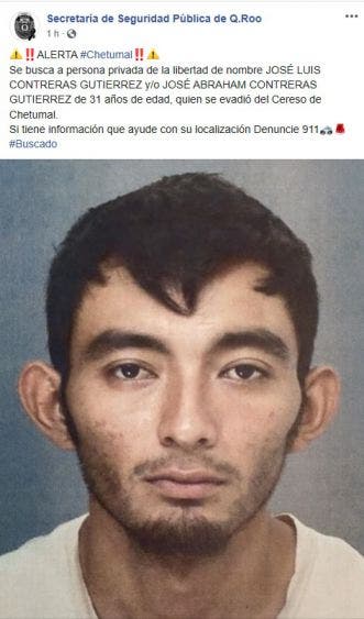 El interno José Luis Contreras Gutiérrez, alias «Ovni», escapó del Centro de Reinserción Social (Cereso) de Chetumal, la madrugada de este lunes.