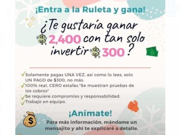 En diversos grupos de WhatsApp se está publicando la invitación para que las personas ‘inviertan’ solamente 300 y a cambio de recibir 2,400.