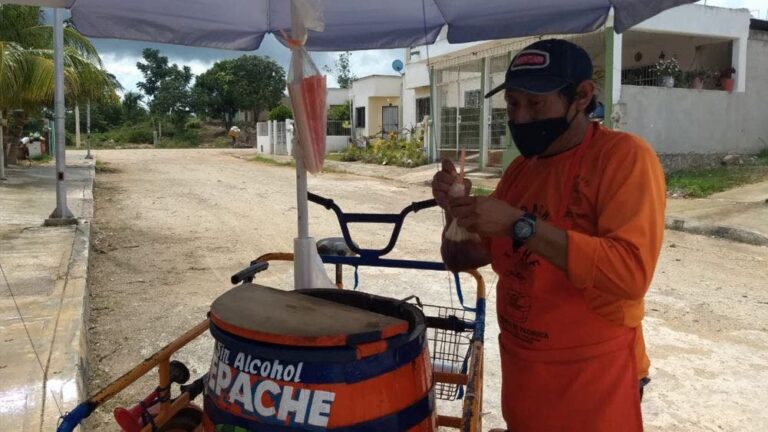 Crece ambulantaje ante el desempleo ocasionado por la pandemia.- Don Enrique es uno de los cientos de trabajadores de hoteles de la Riviera maya que fue despedido, y a pesar de su esperanza a que lo llamen de nuevo, su familia no puede esperar, por ello ahora recorre las calles de Felipe Carrillo Puerto vendiendo tepache.