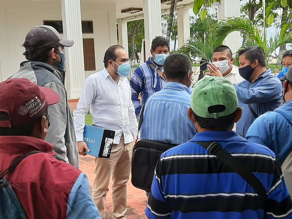 Delegados de las diferentes comunidades del municipio de Bacalar, se congregaron en Palacio de Gobierno para solicitar a la Secretaría de Gobierno se reactive la entrega de apoyos para el desempeño de sus funciones, mismo que fue suspendido debido a emergencia sanitaria por la pandemia del Covid-19.