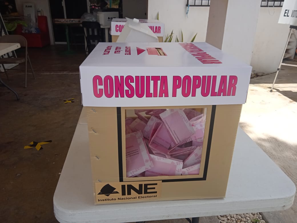 Chetumal.- Al contabilizar el 100 por ciento de las 796 mesas receptoras de la Consulta Popular, en Quintana Roo participó el 6.71 por ciento del millón 328 mil 062 ciudadanos registrados en la lista nominal.