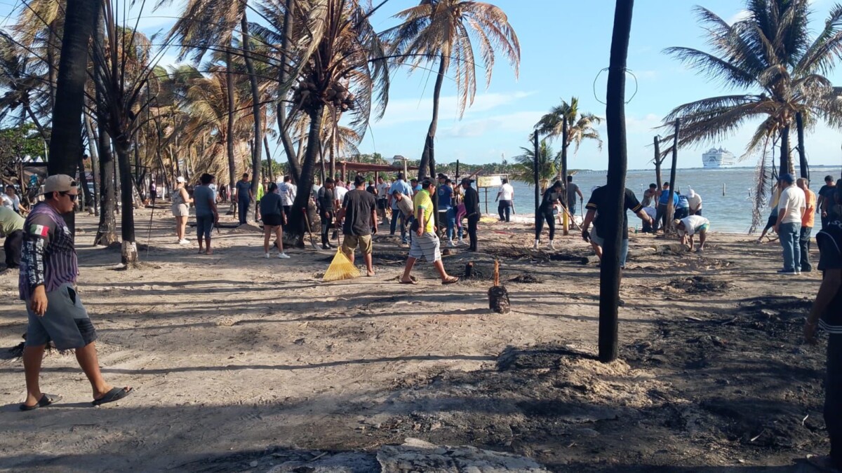 El fuego se originó en una palapa cerca del restaurante “Krazy Lobster” y se extendió a construcciones aledañas en el área de restaurantes y playas.